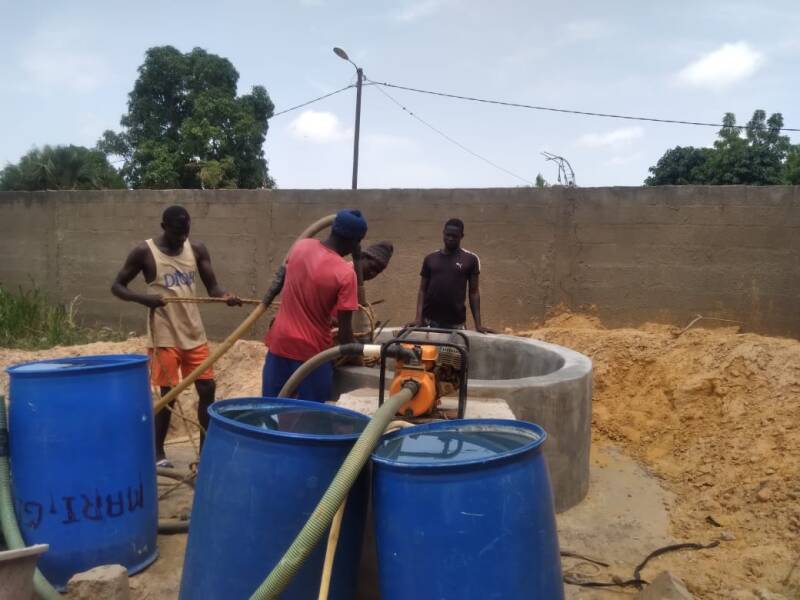 Zo mogelijk wordt gebruik gemaakt van een bestaande waterput, anders wordt er een nieuwe waterput gemaakt. Elke put, zowel de bestaande als de nieuwe, wordt machinaal uitgediept (een boorgat) tot 6 meter onder de bodem van de put. In het boorgat wordt een buis buis geplaatst en daarop wordt een 'pompe surpresseur' aangesloten, die meteen pompt wanneer er een kraan wordt geopend. Zodoende is er altijd voldoende waterdruk.